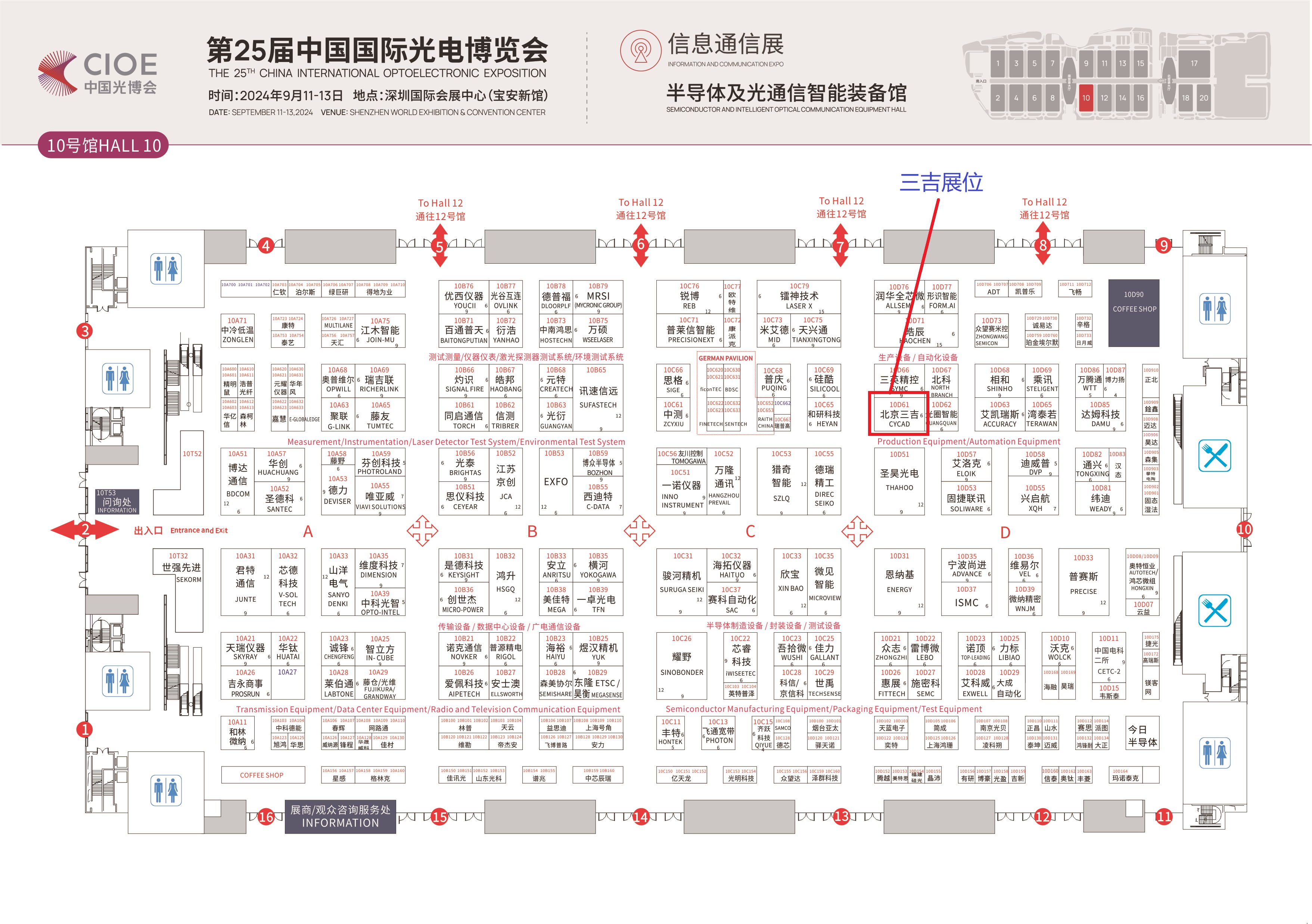今年的光博會【信息通信展】在9號館~12號館舉辦,三吉展位(10D61)位于10號館D區(qū)靠近7號門處。