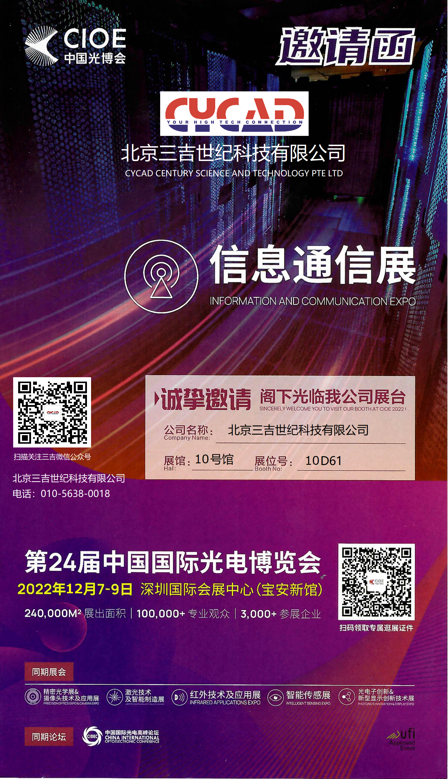 三吉世紀(jì)誠(chéng)邀您參加中國(guó)國(guó)際光電博覽會(huì)(CIOE2022)