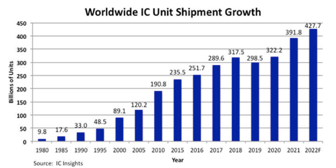 【轉(zhuǎn)載】2022年全球芯片出貨量將達(dá)4277億顆